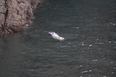 On Skomer, the pups are also identified via a unique combination of colours sprayed onto their lower back, which enables us to follow them as individuals until they lose the colours after completing their first moult at around three weeks old.