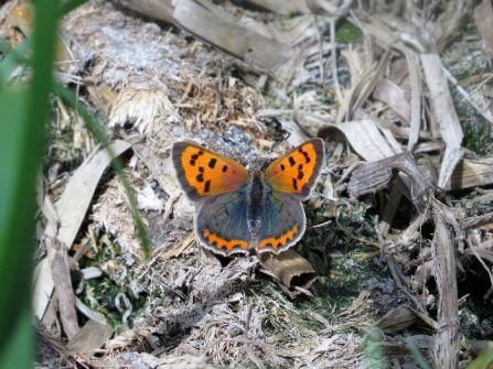 With the weather being as it was, a census of Banded Demoiselles seemed in order. It took an hour to get to the river as there were distractions aplenty along the route, not least of which a year high 35 Swallows over what was left of the pond in SJ4373. Sixty-five Harlequin Ladybirds were a less welcome sight but looking at a particularly nicely marked individual drew my attention to a Gypsonoma dealbana moth, which in turn led me to another reserve first, ACLERIS COMARIANA! Small Copper added itself to the growing butterfly day list.