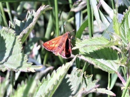 Half way along the lane I made excursions into fields on either side and that to the south was very busy on the butterfly front, with the first of ‘many’ Comma butterflies seen during the day. ‘Many’ was in fact 10, but the norm is none and whenever seen, one or two a day is all that can be expected. The first Small Skippers and Gatekeepers of the year showed nicely, as did Large Skipper and scores of Meadow Browns and Green-veined Whites.