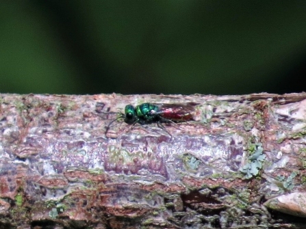 Dozens more Meadow Browns lifted out of the long grass at just about every footfall, but nothing more of great moment was recorded until I was back on the lane leading down from the church in Thornton-le-Moors, when three more Commas were basking in the sunshine. Subsequently, whilst counting Gatekeepers my attention was drawn to a beautiful RUBY-TAILED WASP (Chrysis ignita) another first for the reserve!