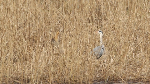 Bittern and Grey Heron at Marbury Reedbed c. Austin Morley