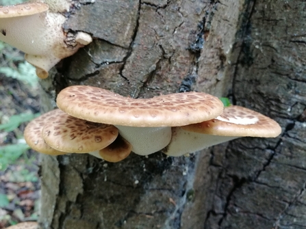 Starting out as stout little ears a little like Shrek's, this fungus grows rapidly into beautiful saucers, often in tiers all down the side of the tree upon which it lives. The cap surface is pale cream/golden and has the most beautiful pattern of brown scales on top, which also gives it it's other nickname - 'Pheasants back', as they resemble the feather pattern of said pheasant.