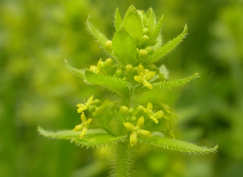 Crosswort gets its name from the position of its leaves - they surround the stem in groups of four, making a cross shape. The tiny, yellow flowers sit atop these crosses and bloom from April to June.